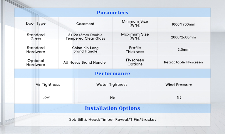 Discover the AMJ 100T Series Casement Door — engineered with German-inspired thermal break technology for superior insulation and energy efficiency. Featuring customizable double-glazed glass and precision hardware, it delivers exceptional weather resistance, security, and noise reduction for homes and commercial projects. Manufactured to AS2047 Australian standards in Shenzhen, China. Ideal for a